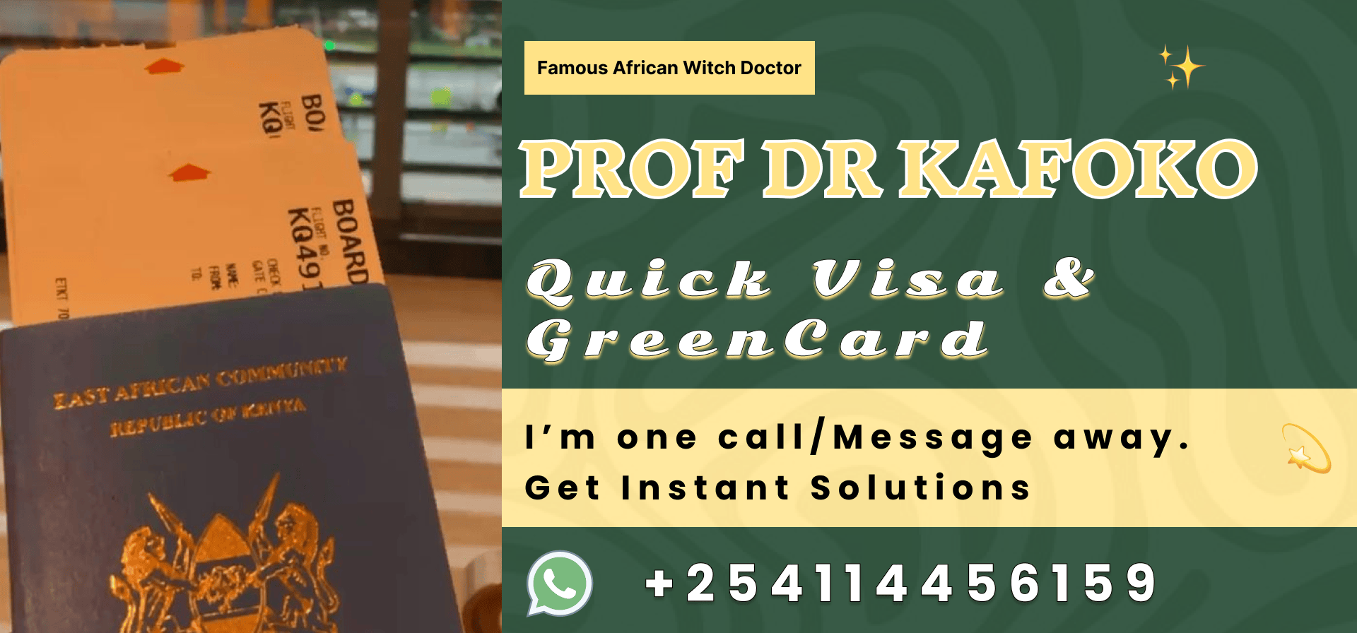Welcome to Prof Dr Kafoko page. Feel free as you browse through whether this is your first visit to my site, or you’re a returning visitor, I have been blessed with unique abilities that allow me to help others on their own path to financial status, love and marriage problems and I am willing and ready to help you